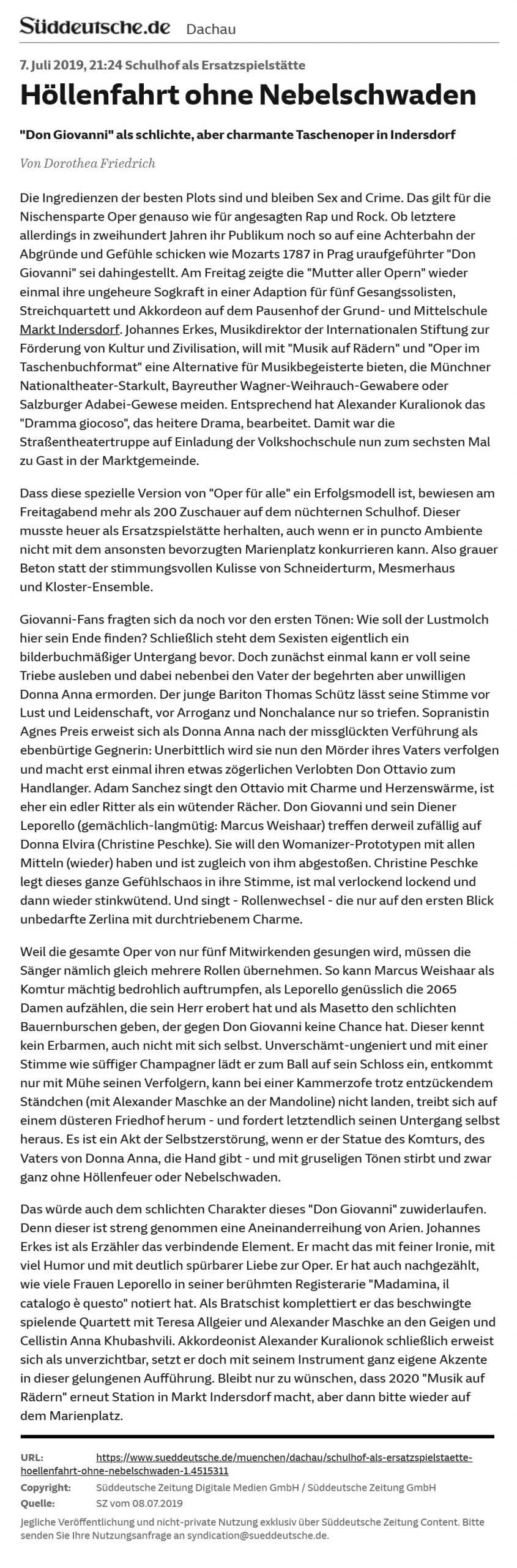 “Superangenehme Stimmung und eine wunderbare Aufführung” | Premiere 25.06.2019 | Dr. Ralph Philipp Ziegler, Kulturamtsleiter Offenbach am Main
