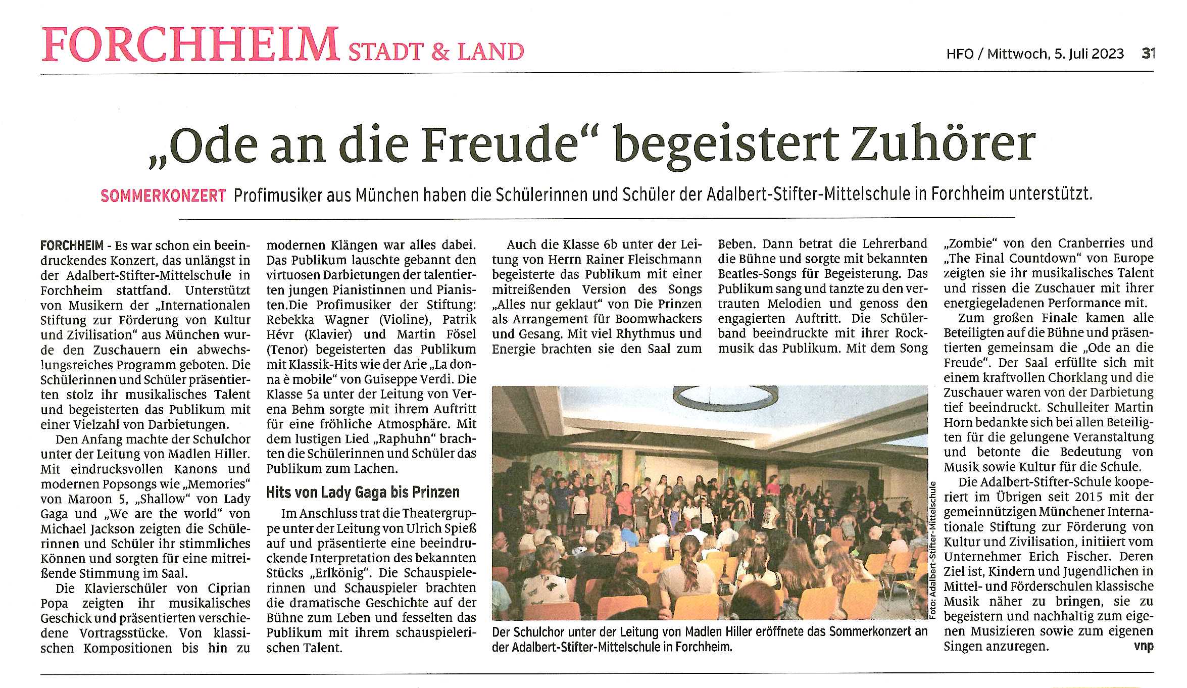Musik für Schüler | “Ode an die Freude” begeistert Zuhörer | Festivalkonzert an der Aalbert-Stifter-Mitteschule in Forchheim