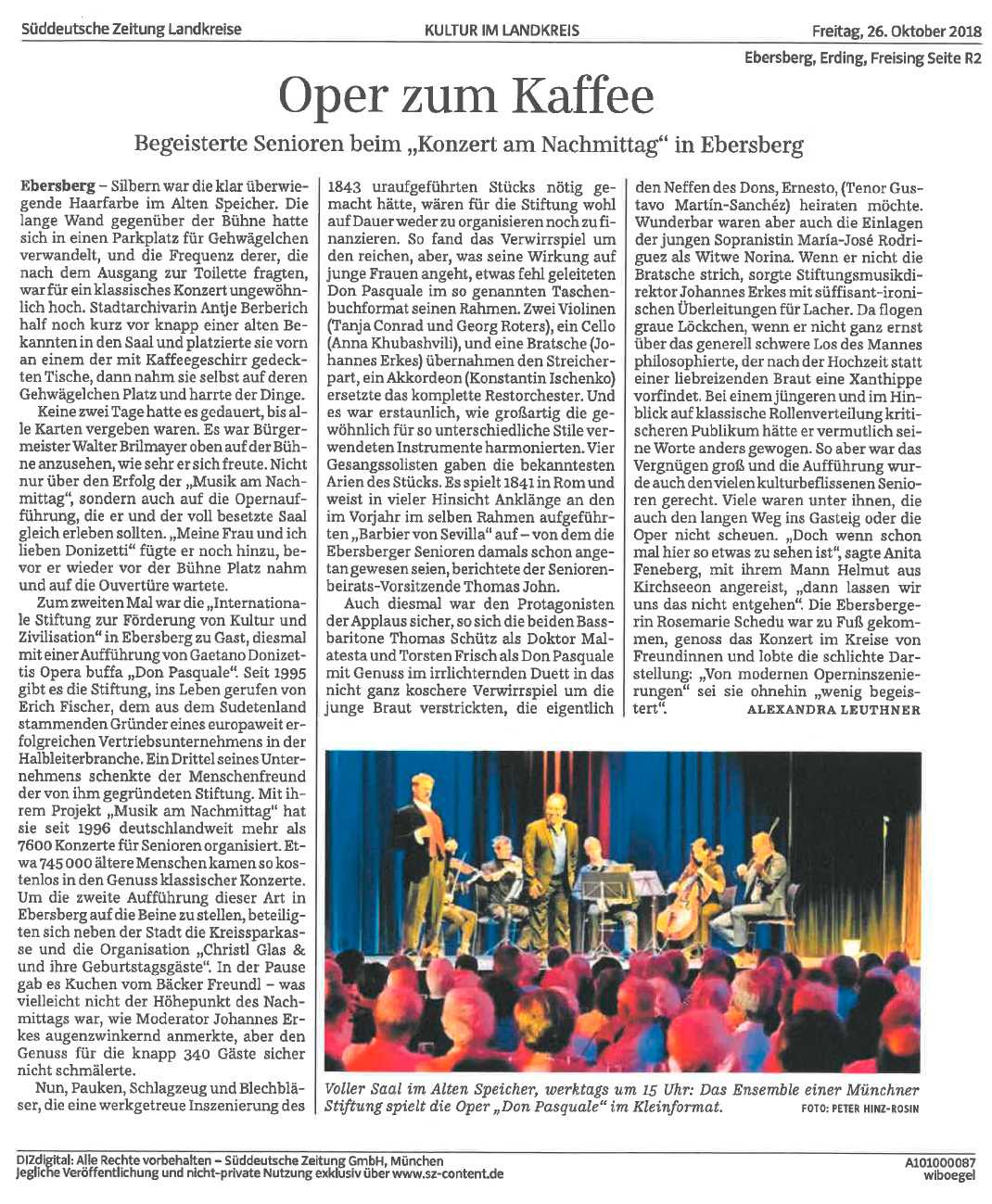 “Ein bunter Mix erfreut die Senioren” | Musik am Nachmittag in Hoyerswerda | Sächsische SZ, 27.09.2019