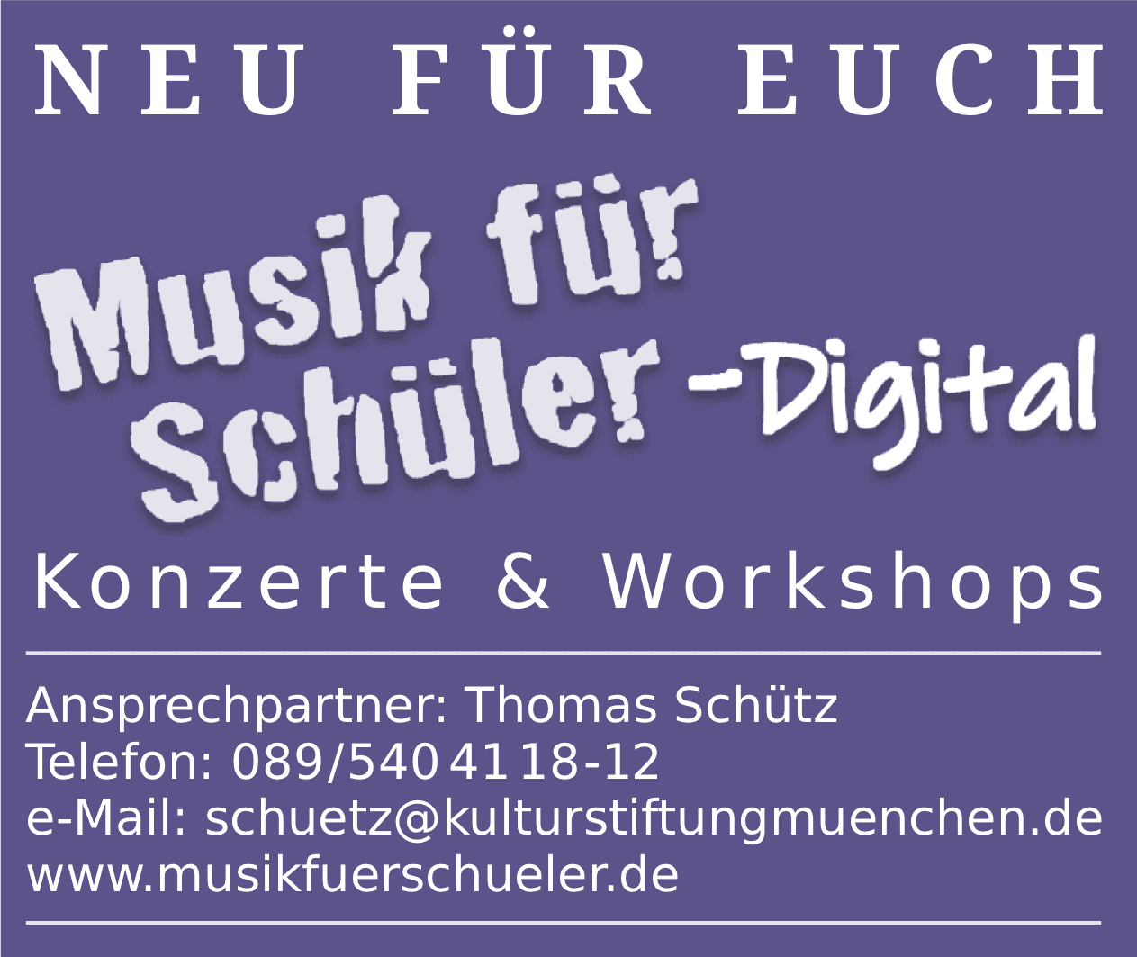Wir geben unser Bestes, um live Kultur aufrecht zu erhalten; unser Mitarbeiter Thomas Schütz engagiert sich in idealistischer und unermüdlicher Weise gegenüber sämtlichen "Corona-Behörden", um Hürden zu überwinden, damit "Musik am Nachmittag" stattfinden kann.