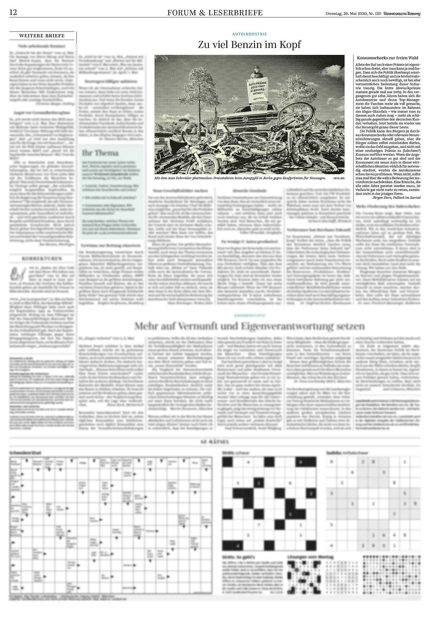 Konsumschecks zur freien Wahl | Leserbrief von Jürgen Dorn | SZ 26.05.2020 Forum & Leserbriefe „Autoindustrie“