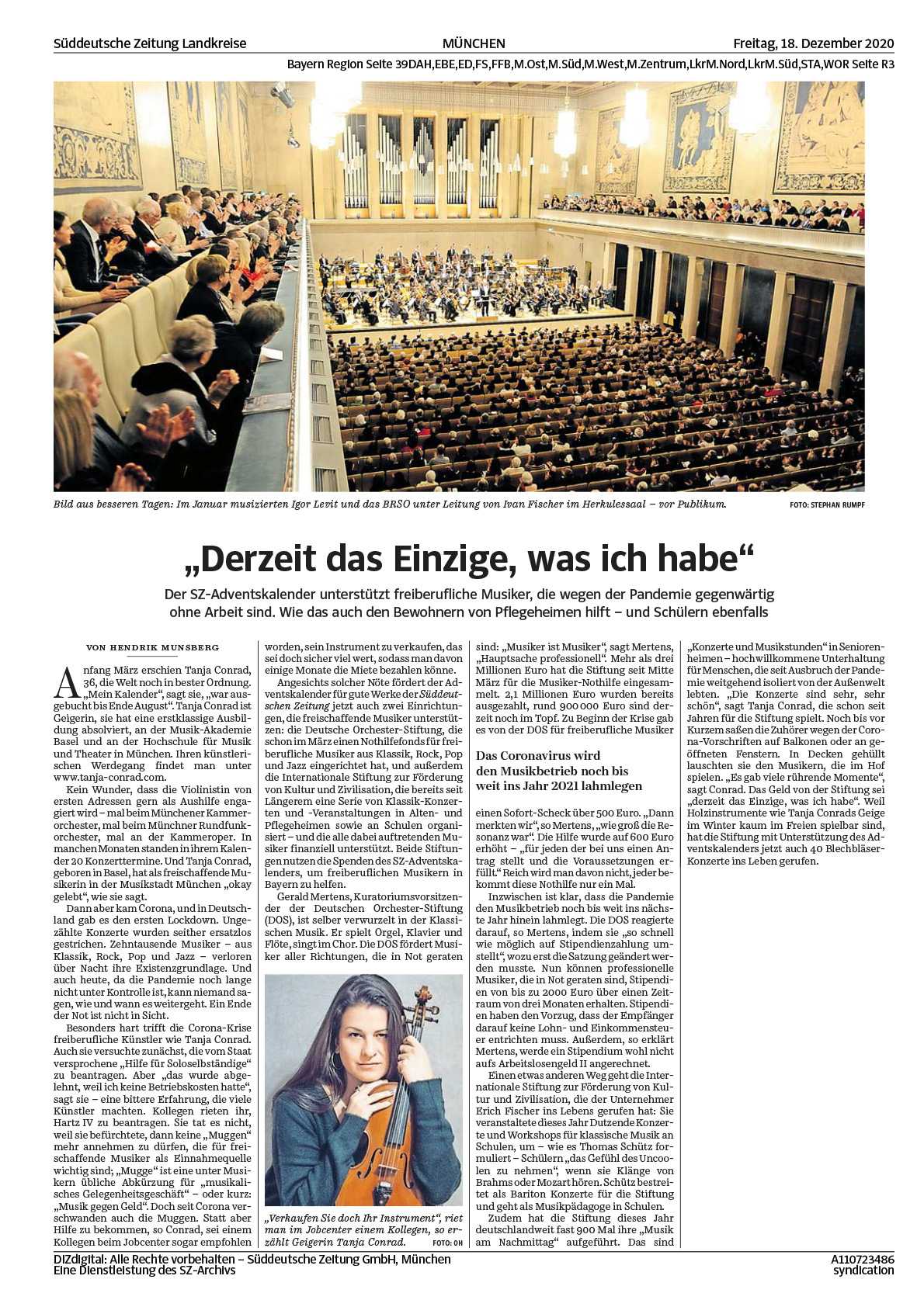 "Das Einzige, was ich derzeit habe" von Hendrik Munsberg | SZ 18.12.2020