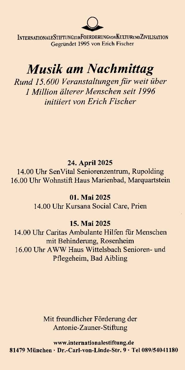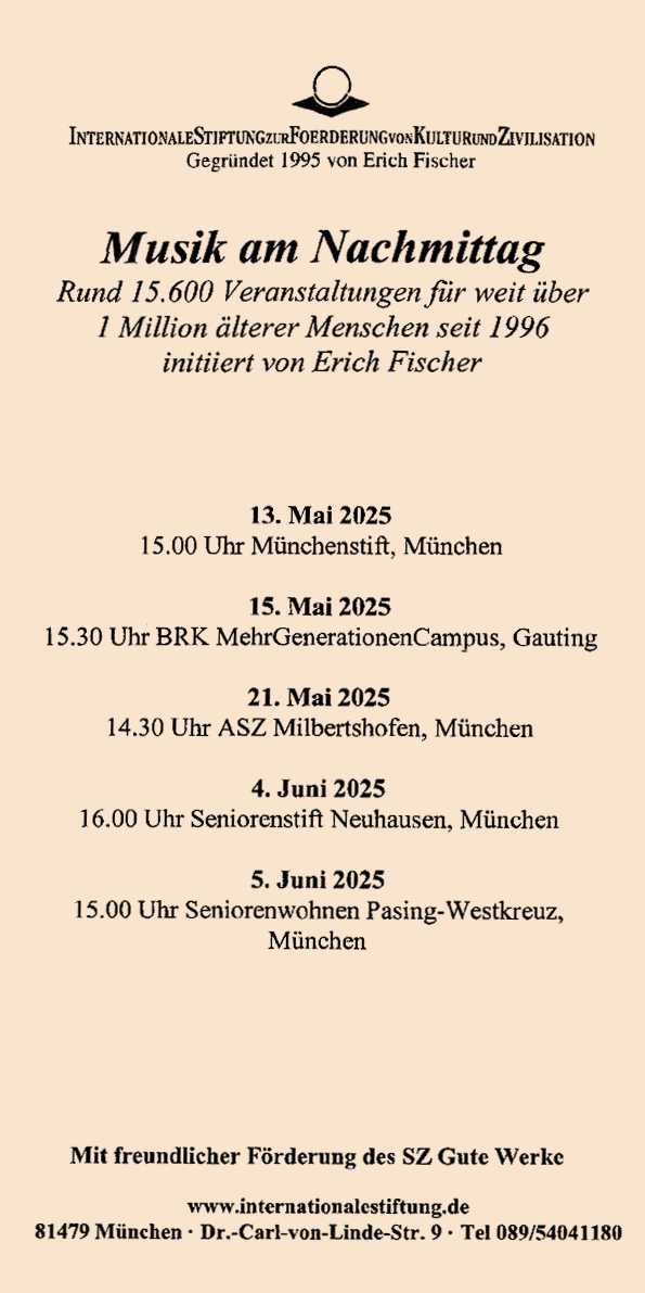 Programmbeispiele 2025 | Archiv | Konzerte in Altenheimen
