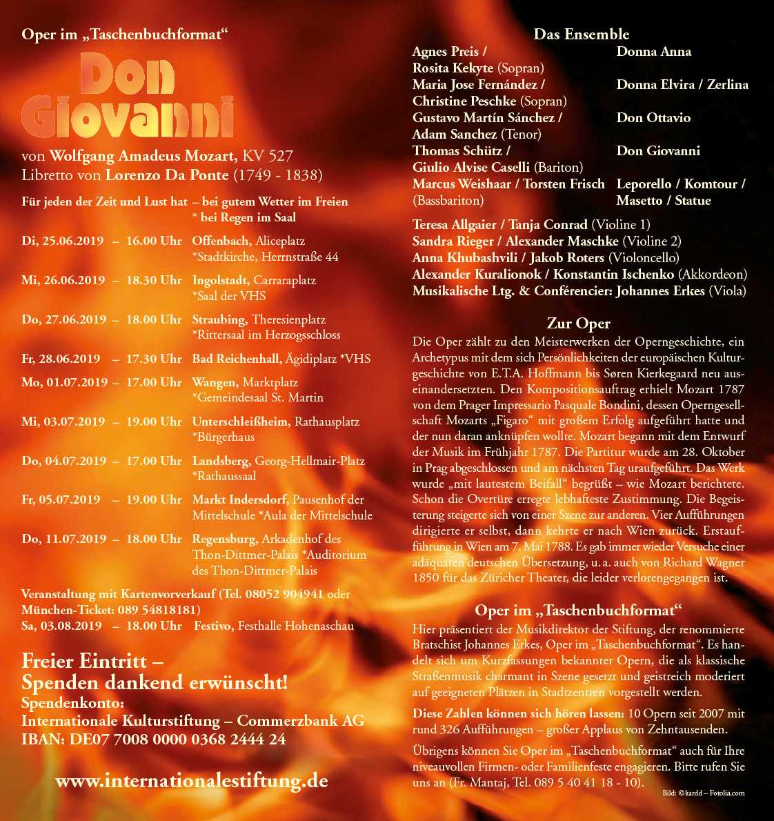 Sommer-Tournee 2019 | Musik auf Rädern DON GIOVANNI von W.A. Mozart | 25.06 - 11.07.2019 Oper im "Taschenbuchformat"