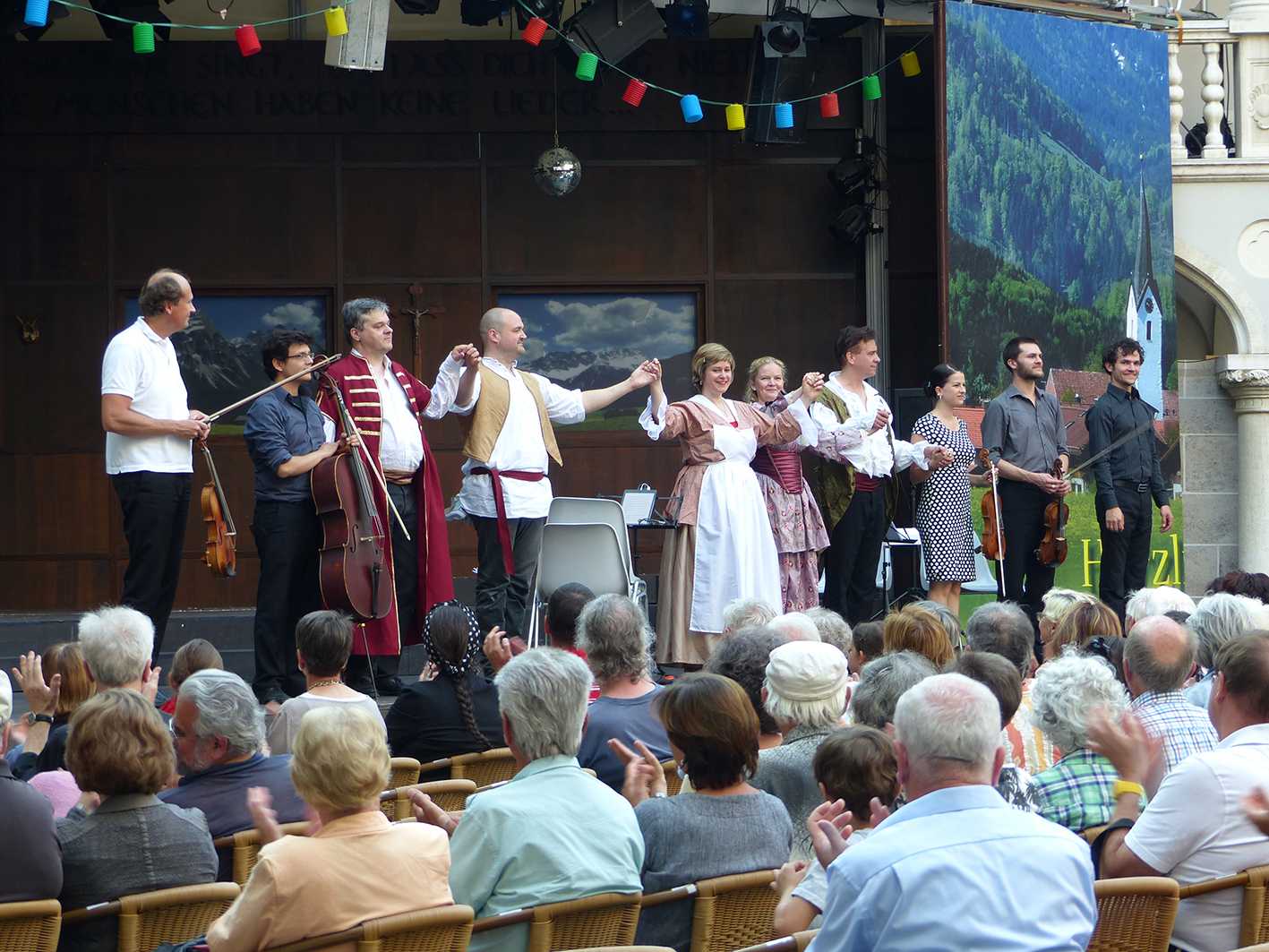 Es war sehr phantasievoll und schön von dem ganzen Ensemble vorgetragen und auch wieder mit der gewohnt gelungenen Moderation. Johannes Erkes macht das einfach toll. Das Wetter und die ganze Atmosphäre waren sehr schön und das fand auch das Publikum, das das am Ende mit stehendem Applaus honorierte.