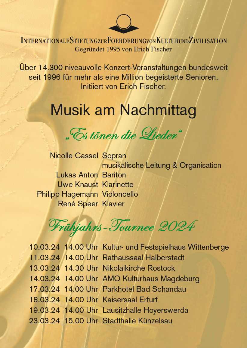 Frühjahrs-Tournee 2024 vom 10.03 bis 23.03 | Musik am Nachmittag in festlichen Sälen | “Es tönen die Lieder”