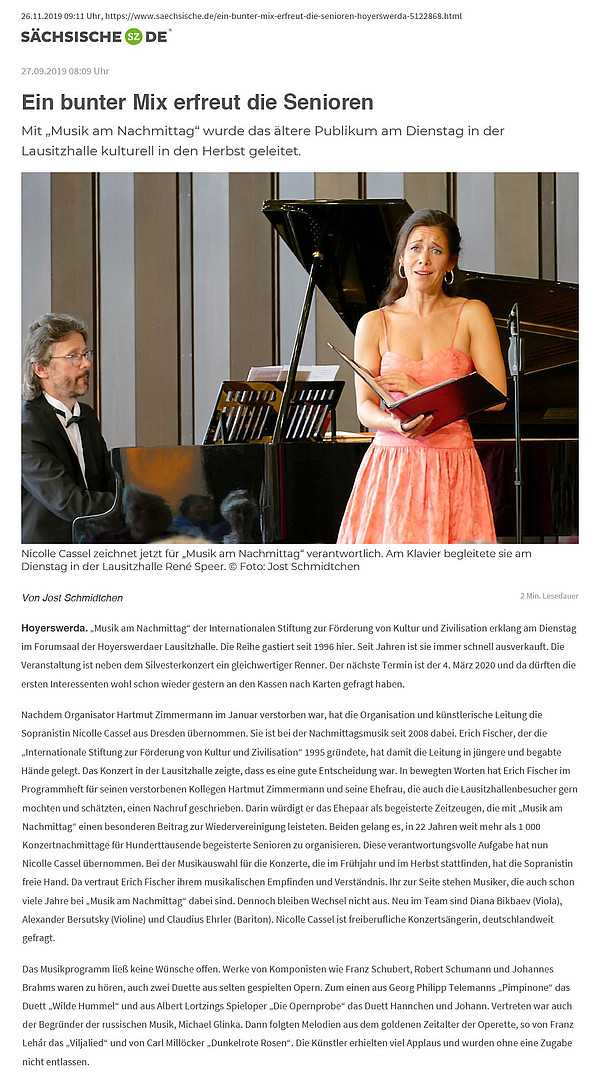 “Ein bunter Mix erfreut die Senioren” | Musik am Nachmittag in Hoyerswerda | Sächsische SZ, 27.09.2019