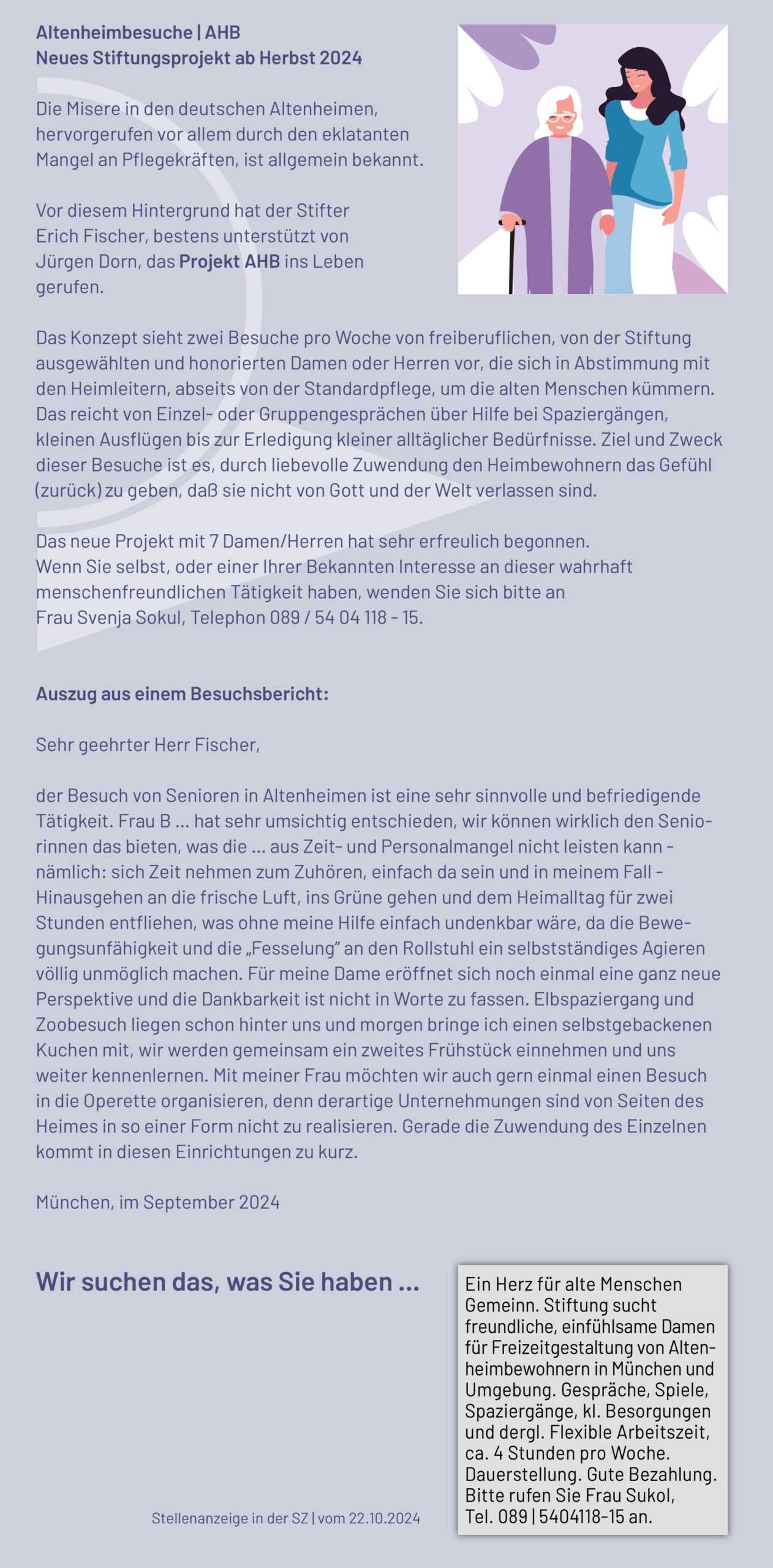 Altenheimbesuche (AHB) | Neues Stiftungsprojekt ab Herbst 2024