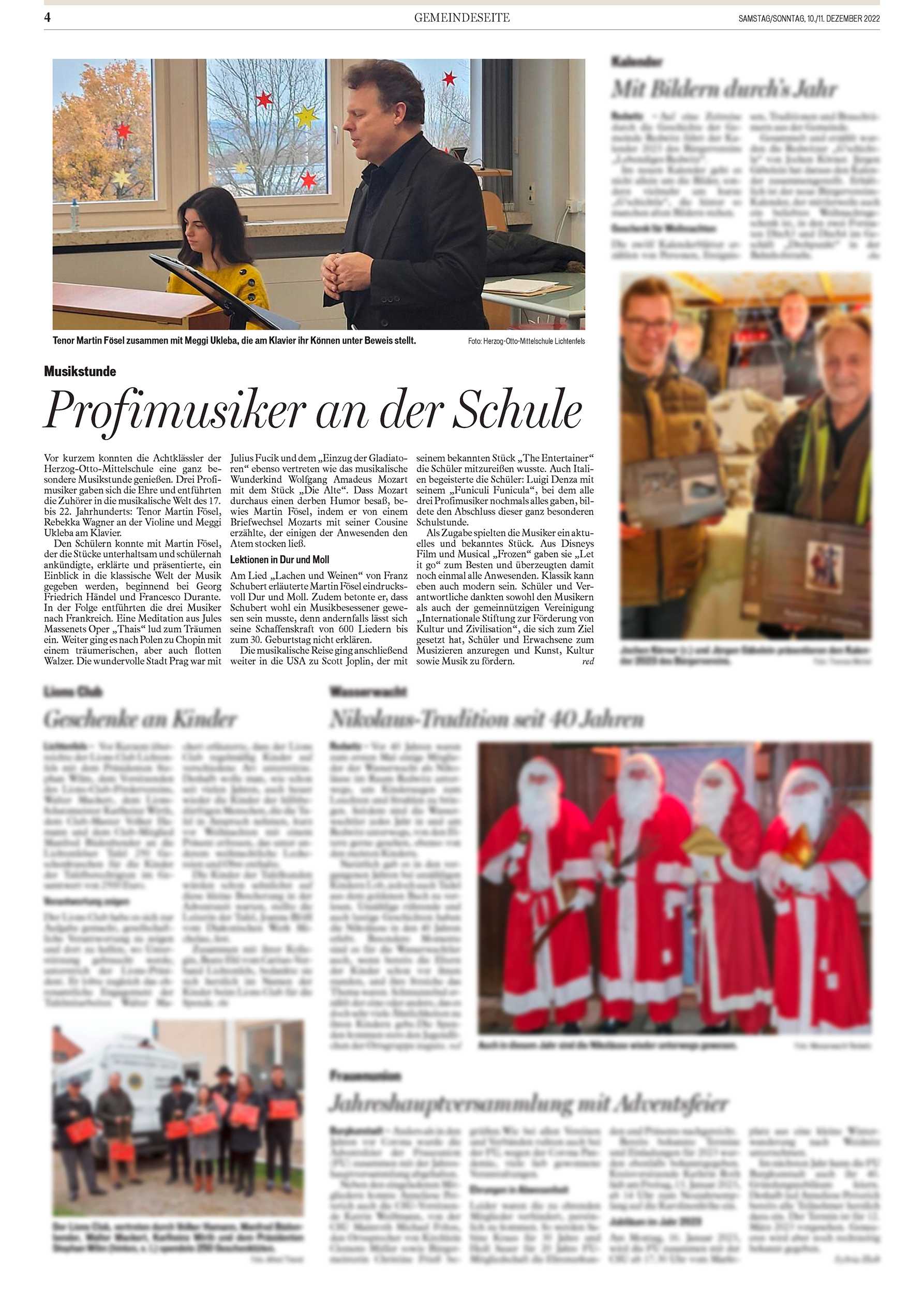 Schulkonzert | “Profimusiker an der Schule” | Fränkischer Tag, 10./11. Dezember 2022