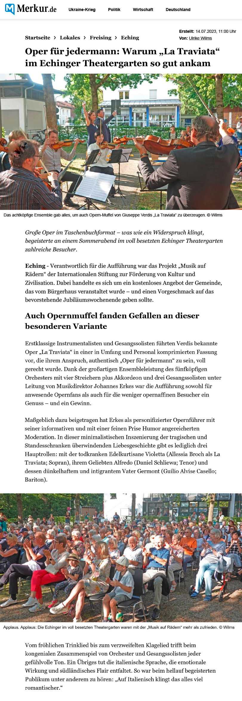 Es war sehr phantasievoll und schön von dem ganzen Ensemble vorgetragen und auch wieder mit der gewohnt gelungenen Moderation. Johannes Erkes macht das einfach toll. Das Wetter und die ganze Atmosphäre waren sehr schön und das fand auch das Publikum, das das am Ende mit stehendem Applaus honorierte.