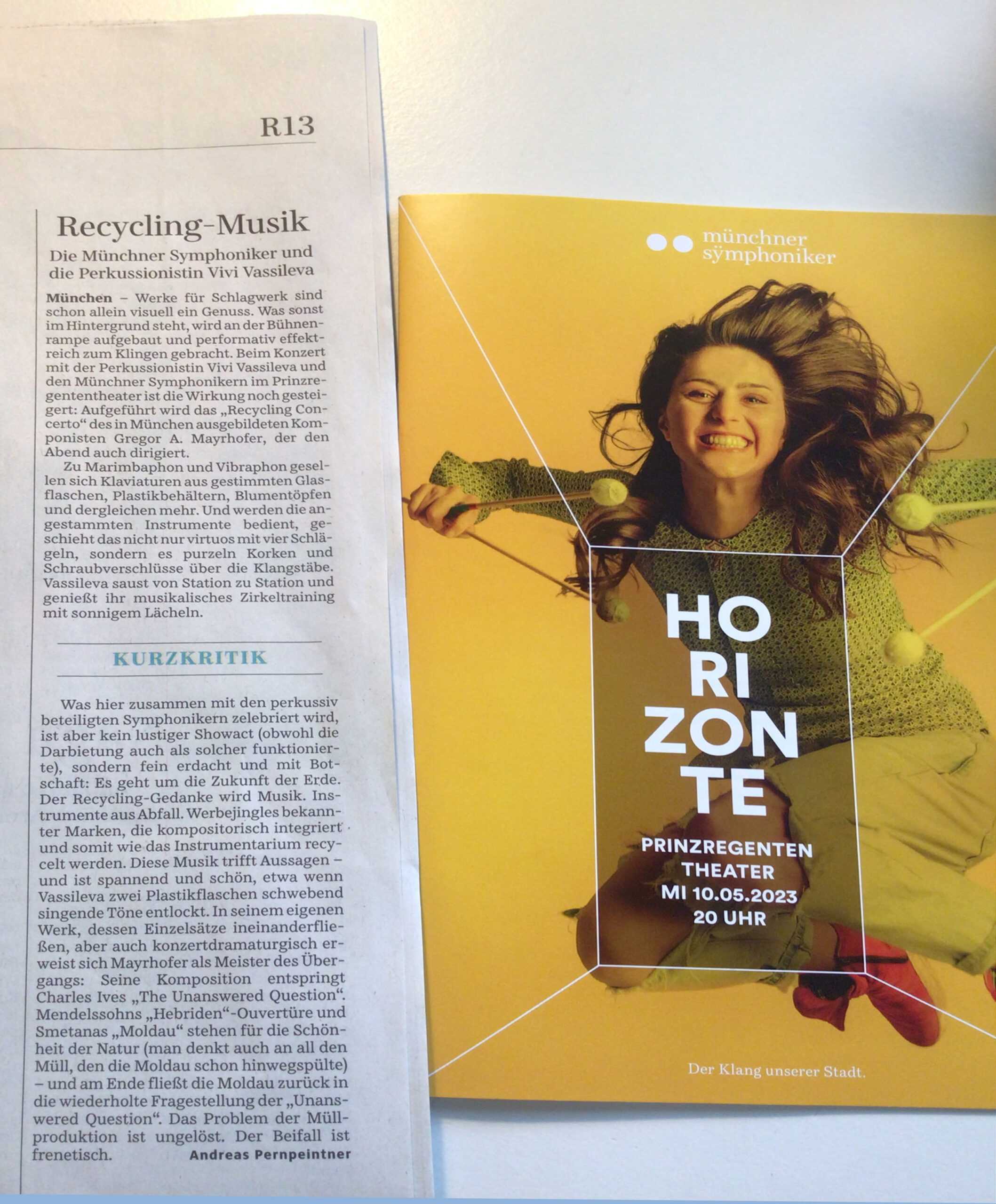 Unerhört: Gregor A. Mayrhofers „Recycling Concerto“ für Recycling-Percussion und Orchester. Aus Plastikflaschen, Blumentöpfen und Kaffeekapseln – kurz, aus Hausmüll erstehen neue Instrumente für dieses herausfordernde Konzert, das auch noch viel Spaß macht. Doch die Wegwerfgesellschaft ist eine ernste Sache, ihre Probleme ungelöst. Charles E. Ives stellt in „The Unanswered Question“ mittels einer Trompete siebenmal „die ewige Frage nach dem Sein“, vier Flöten suchen vergeblich nach einer Antwort. Konsequent im Sinne seines Anliegens erklingt bei Mayrhofer Ives unbeantwortetes Fragemotiv immer wieder.