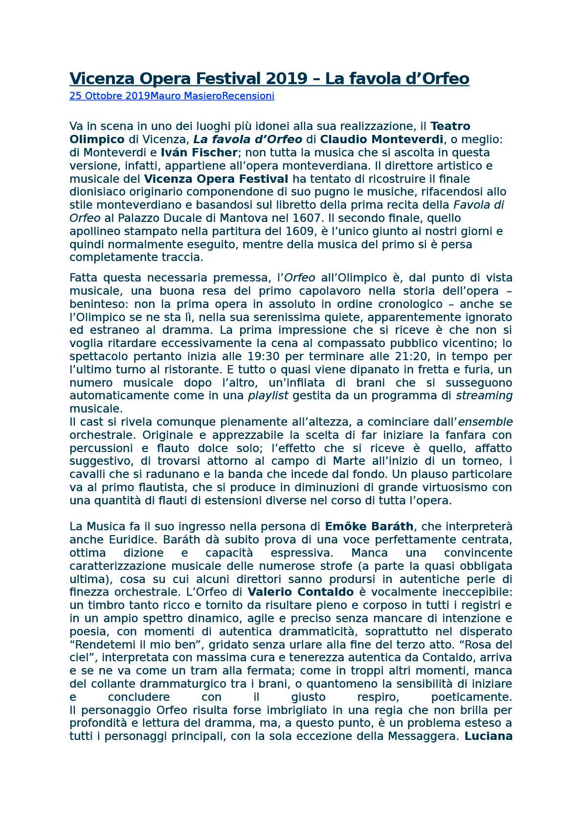 Vicenza Opera Festival 2019